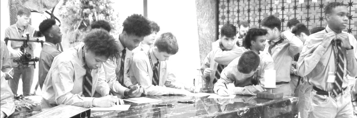 Headmaster Rev. Phillip Cook, O.S.A. with Students at Cascia Hall Preparatory Academy