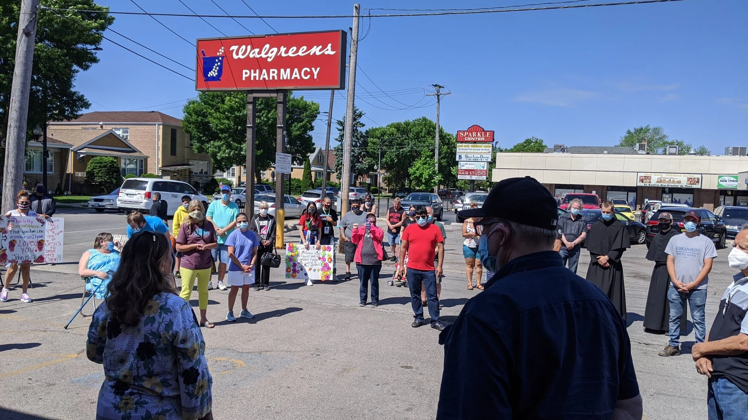 This interfaith community gathering proved to be a sign of solidarity from the grassroots level that brought nearly seventy people together in a spirit of deep prayer, compassion and unity. The location Isabel chose was just five blocks away from the Augustinian parish of St. Turibius—a local Walgreens that stood boarded up after rioters broke into it and looted the shelves. It was intentionally chosen as a significant place to congregate at the site of such reactionary violence, perhaps by some who found it opportune to use the protests to get away with theft. The prayer service itself was led by representatives of the Islamic, Catholic, and Protestant communities, each offering a prayer and a reflection about the state of our city and nation, and how God can be found in these revolutionary times. A moment was also given to read aloud the names of the victims of homicide in Chicago during the previous month, a powerful display of the sheer humanity behind the famous statistics of Chicago’s violence.