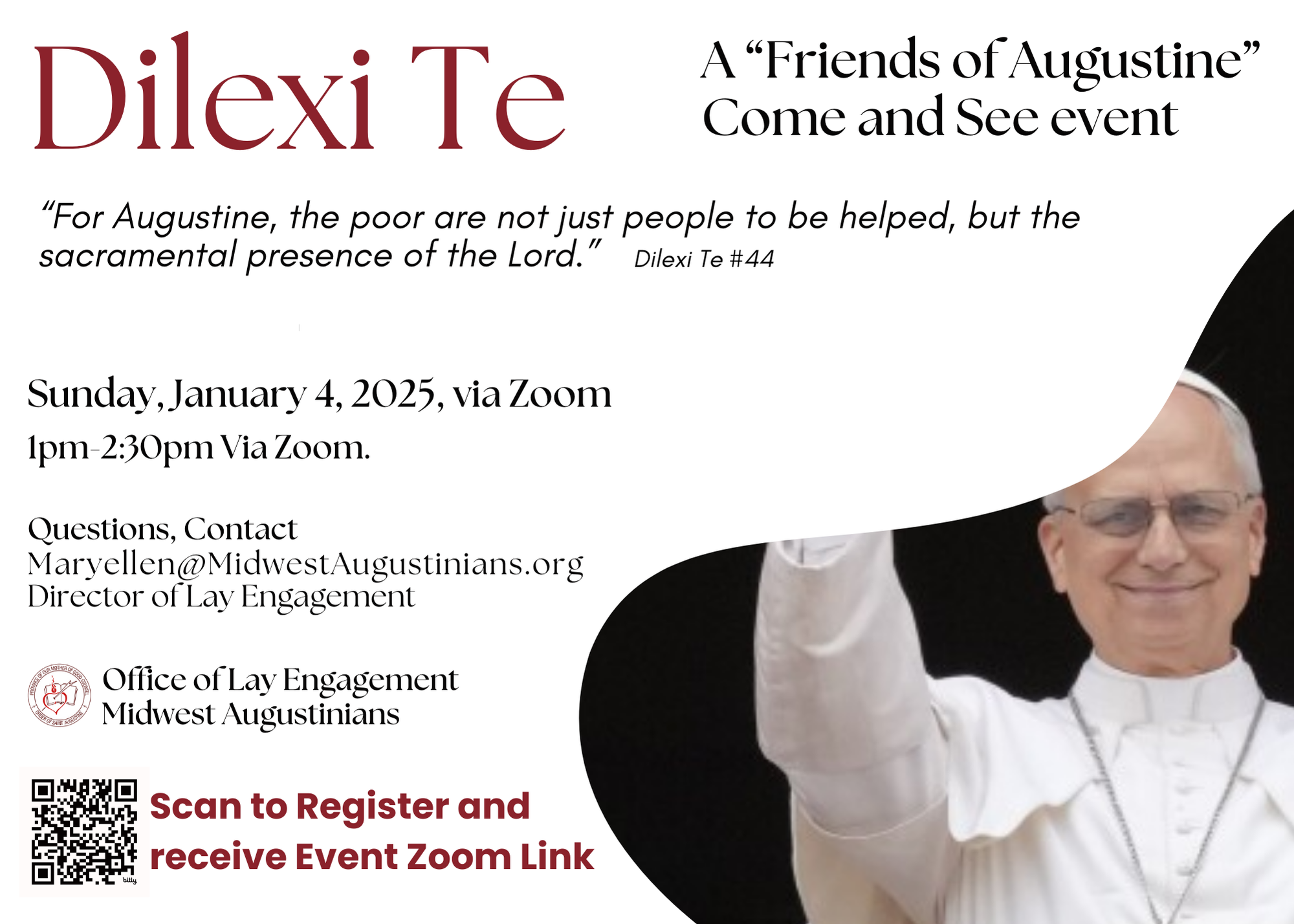 Dilexi Te: a "Friends of Augustine" Come and See event Sunday, January 4, 2026 1:00 PM 2:30 PM via ZOOM (map) Google Calendar ICS Register Here